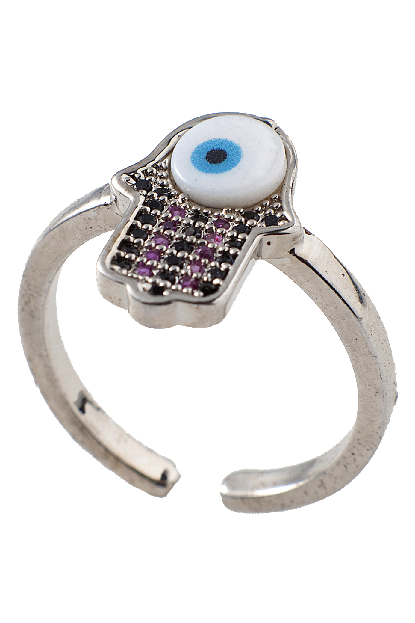 Δαχτυλίδι ανοιγόμενο σε ασημί απόχρωση με σχέδιο hamsa και μάτι