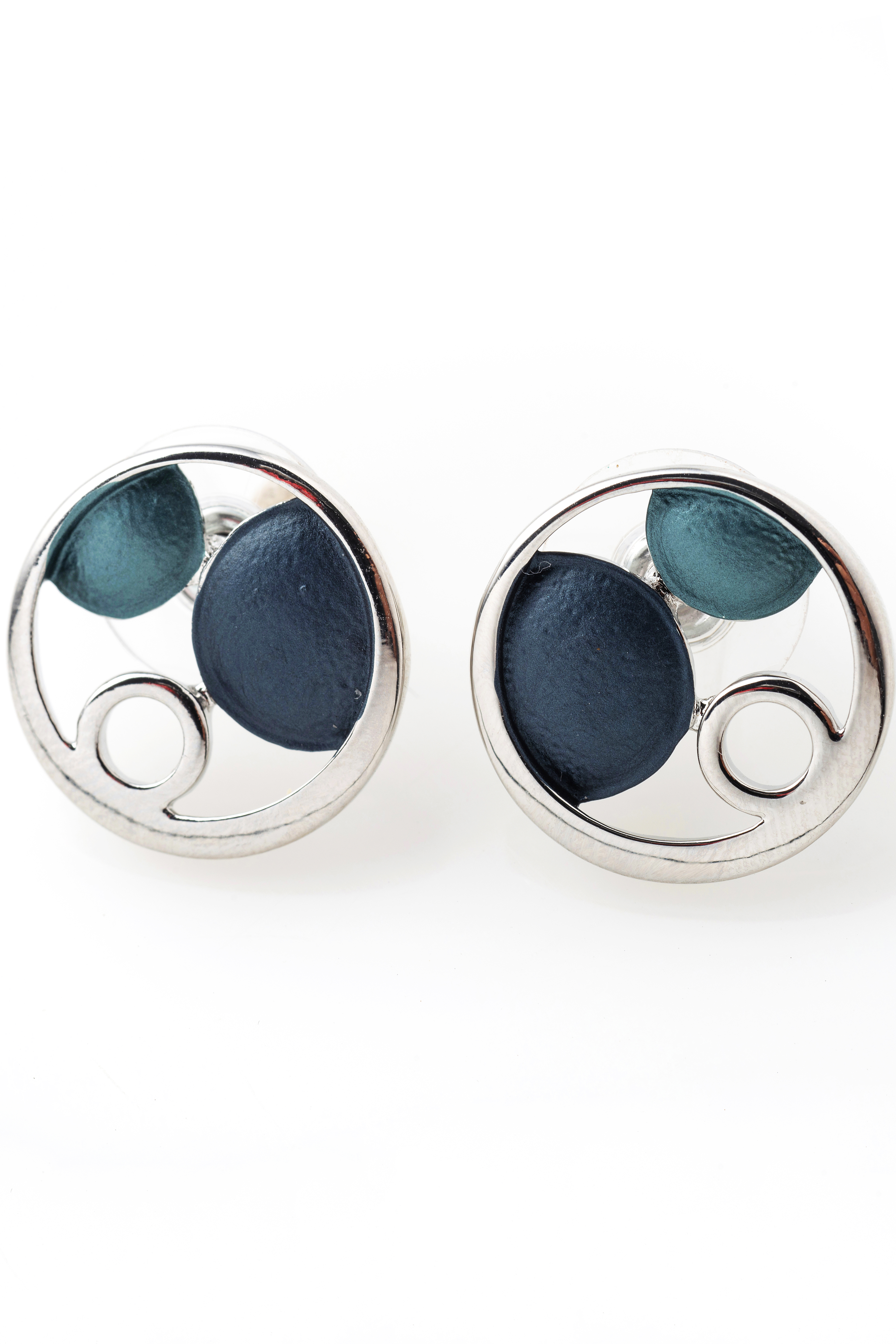 Ασημί στρογγυλά σκουλαρίκια με διακοσμητικά σχήματα στο εσωτερικό