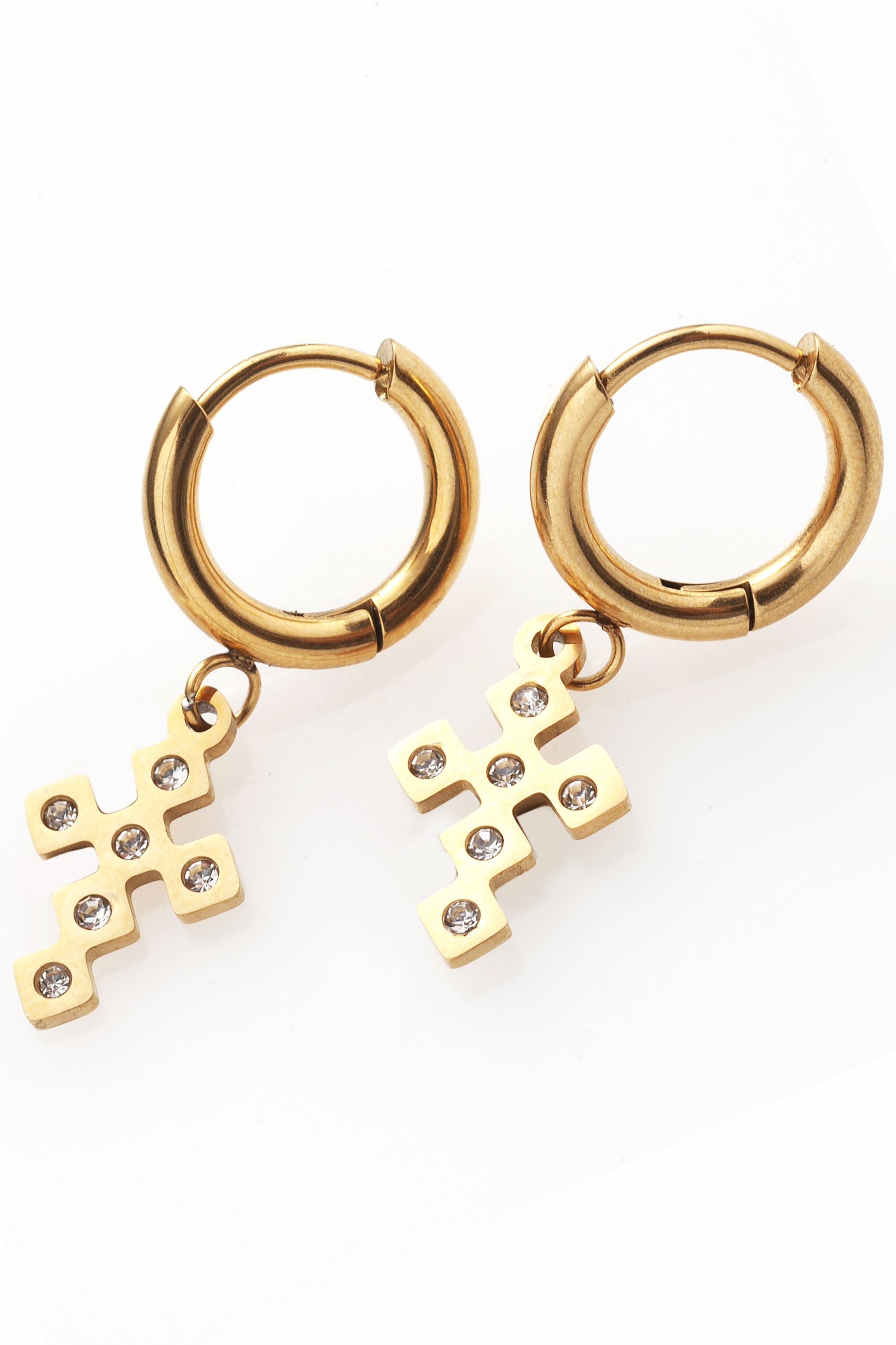 Μικρά χρυσά σκουλαρίκια κρίκοι με σταυρό
