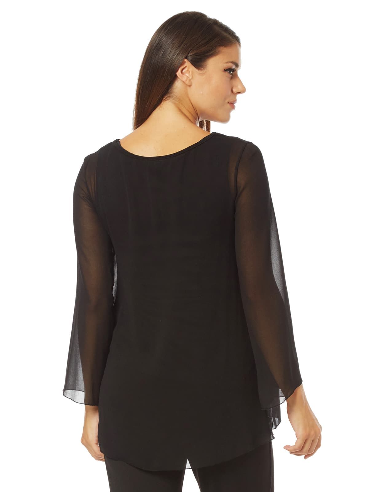 Muslin blouse with embroidery sequin on the front side, includes inner top