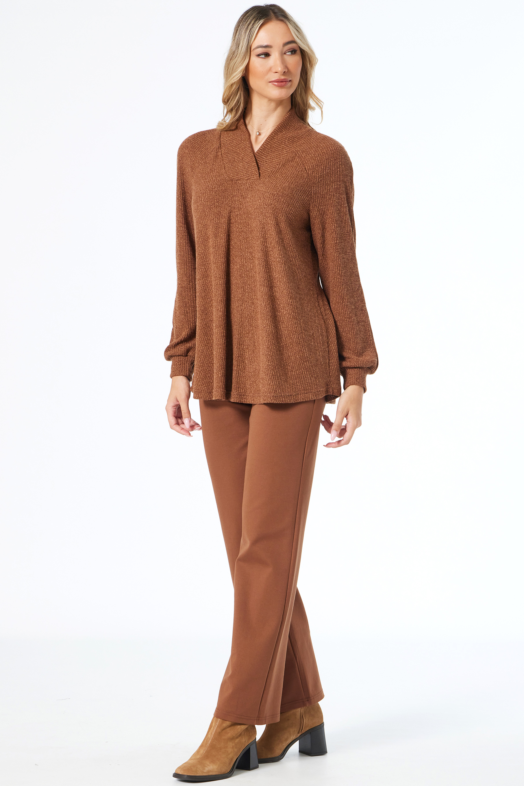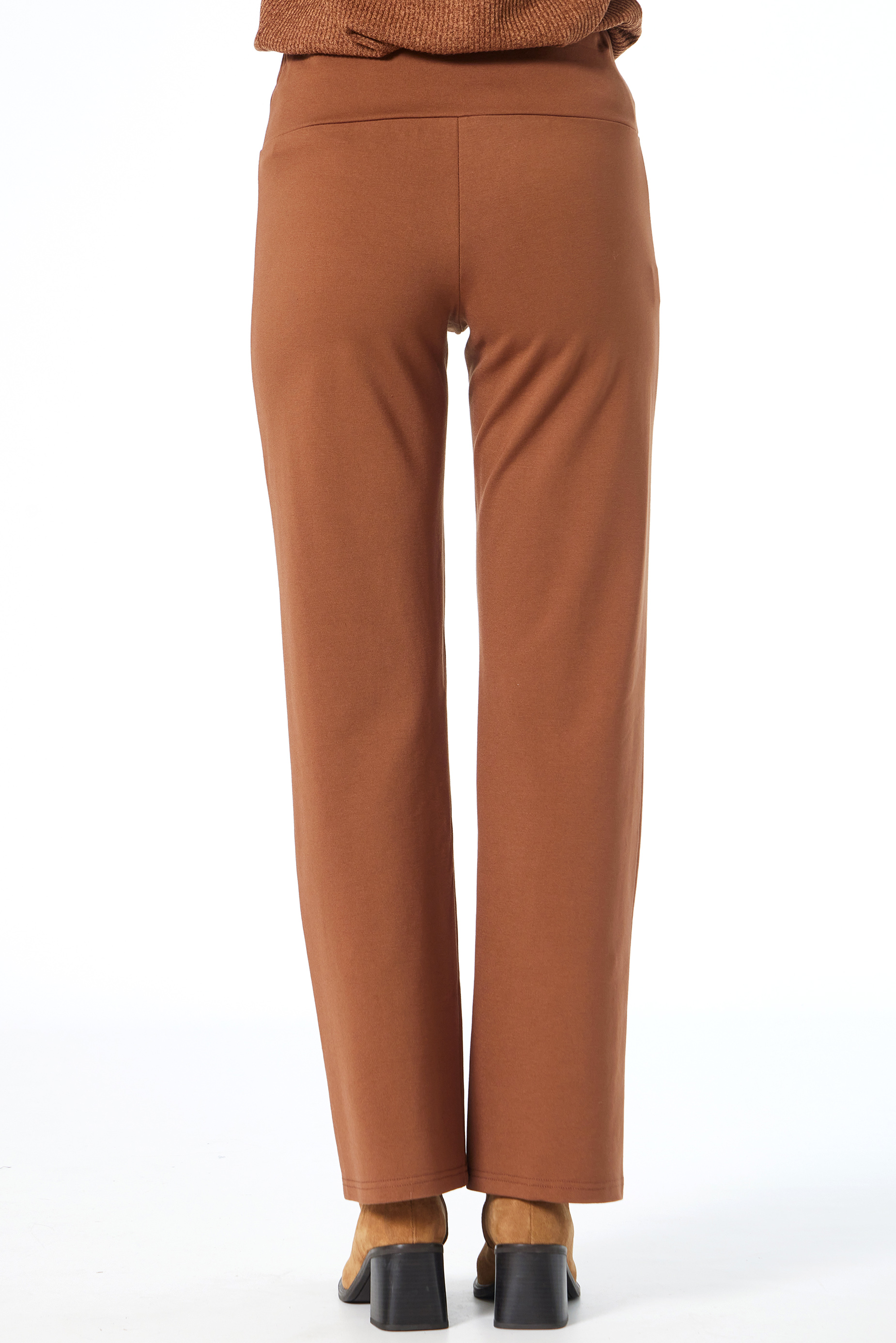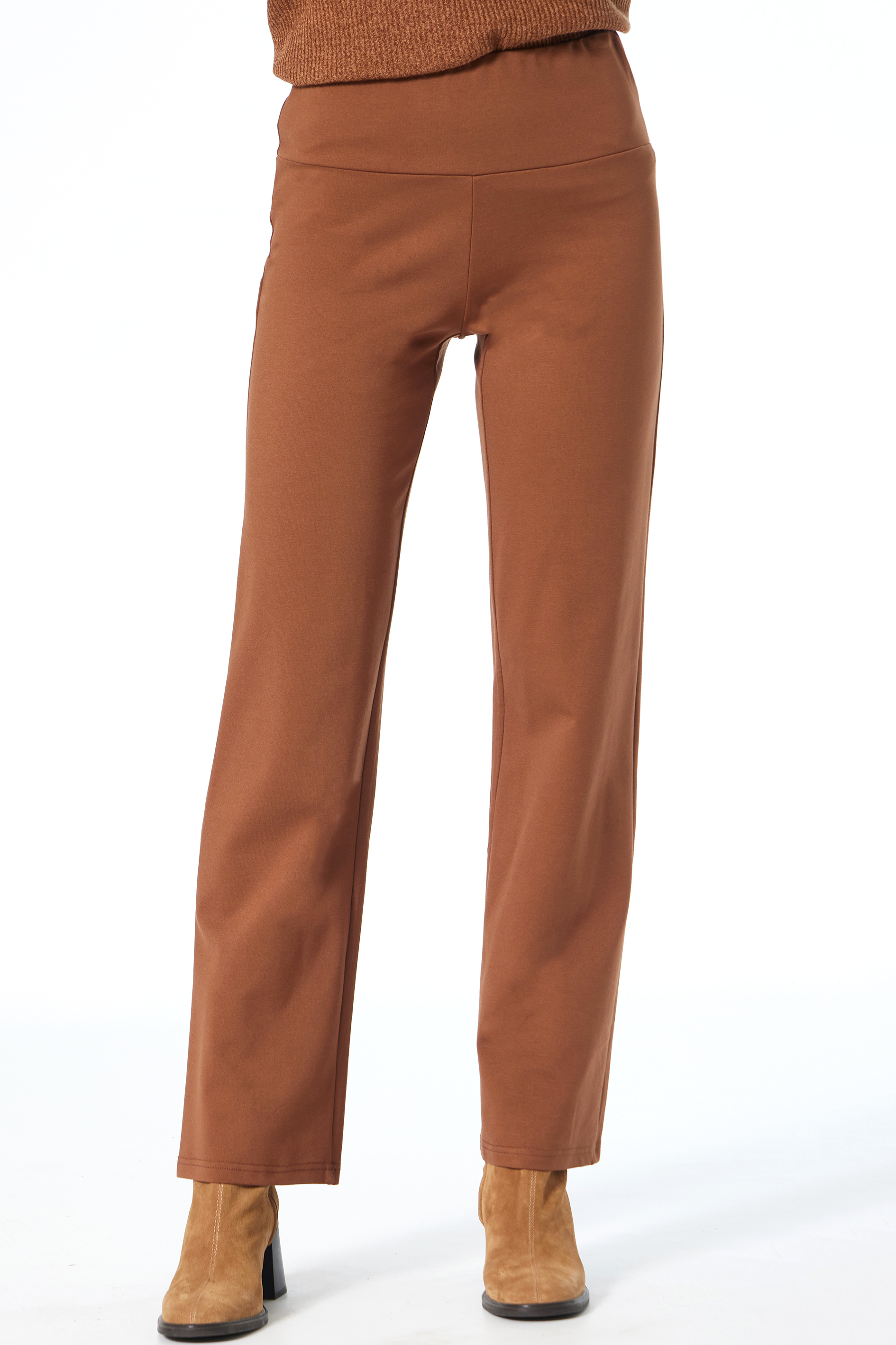 Μονόχρωμο ελαστικό παντελόνι με μπάσκα και λάστιχο στην μέση, σε ίσια γραμμη