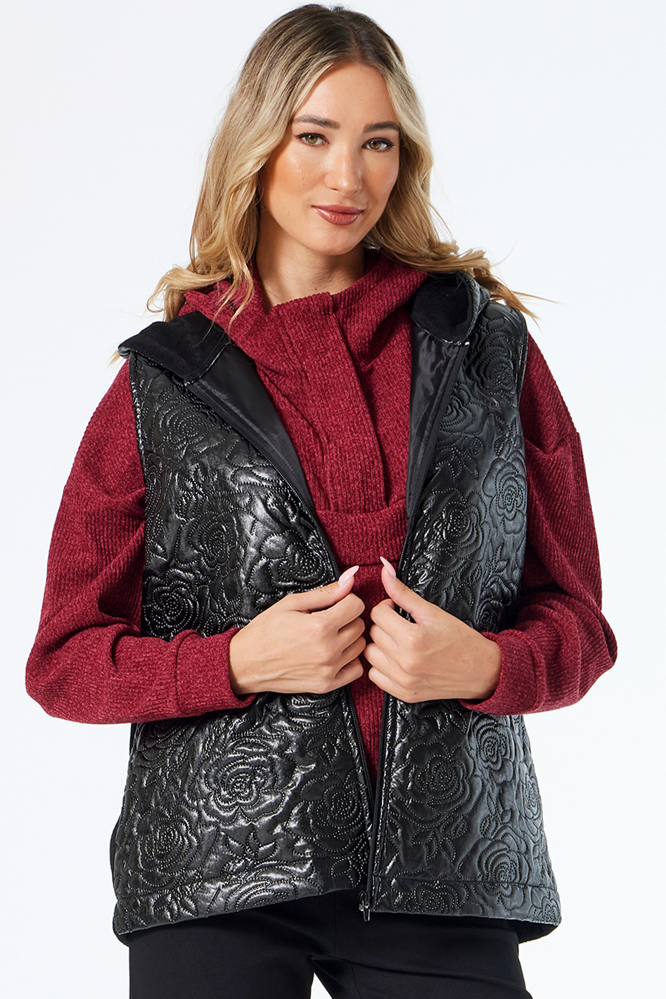Αμάνικο καπιτονέ μπουφάν με κουκούλα, κλείσιμο με φερμουάρ
