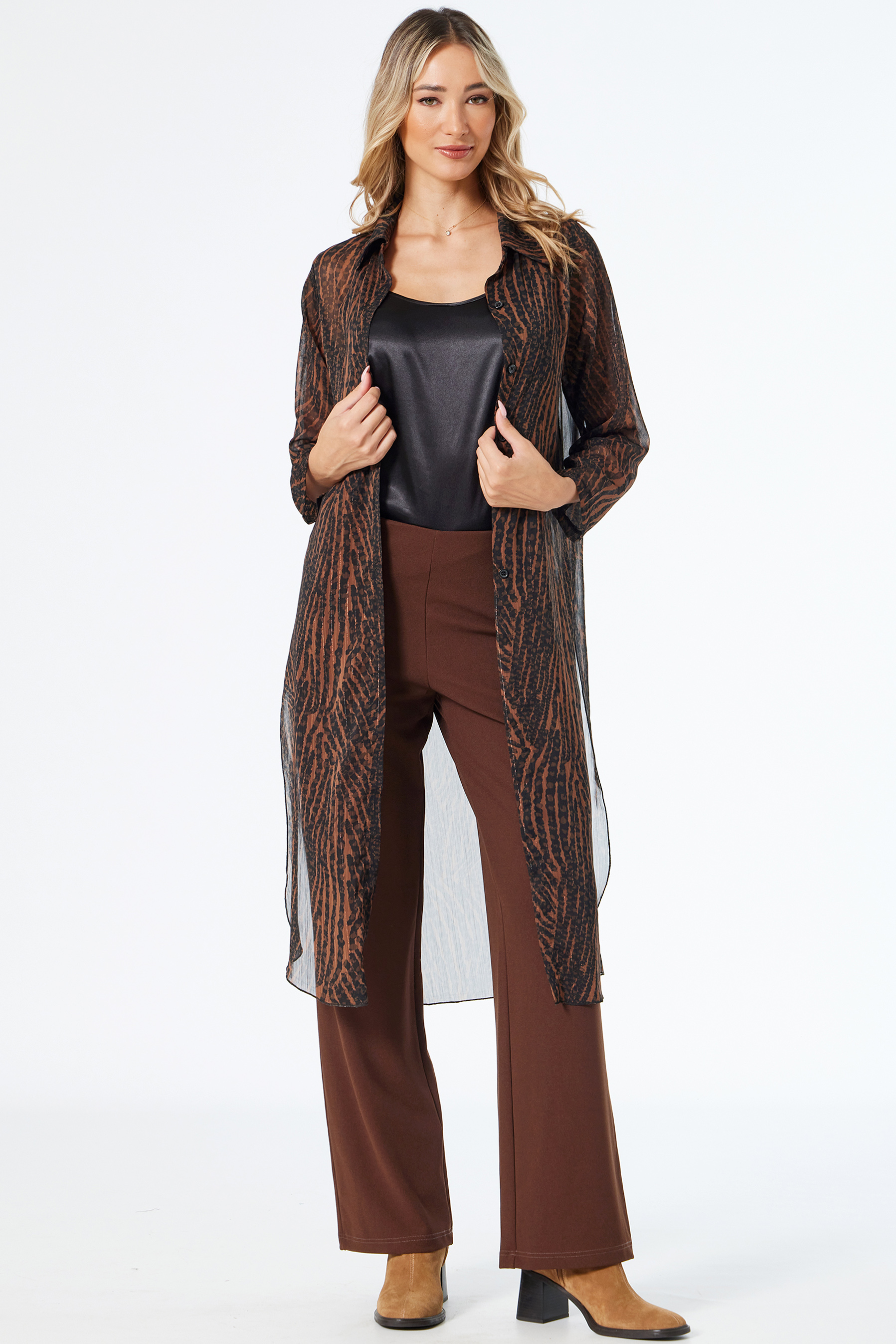 Τιγρέ μακριά lurex πουκαμίσα με ανοίγματα στο πλάι