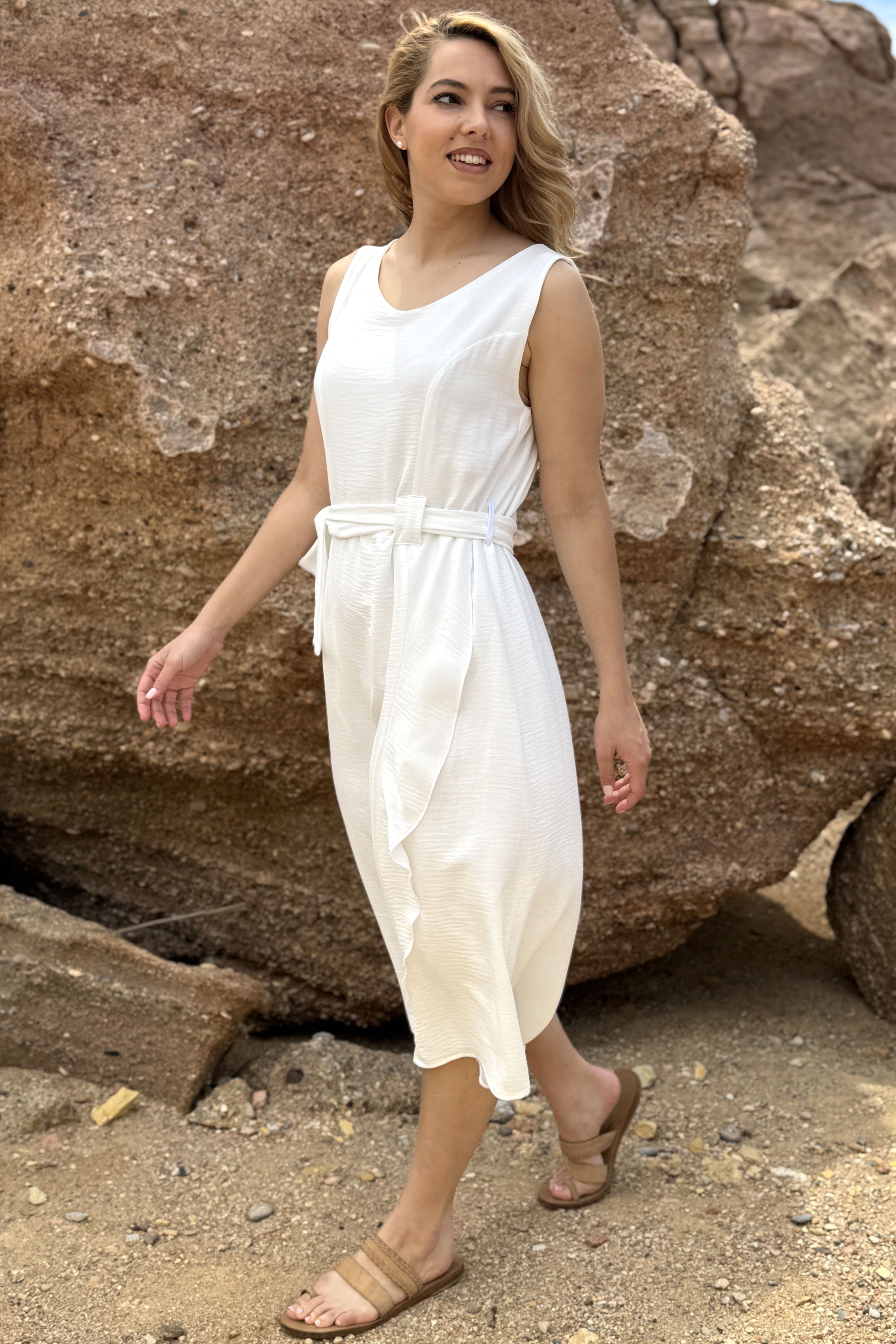 Sleeveless dress with belt on the waist and back zipper in A-line fit